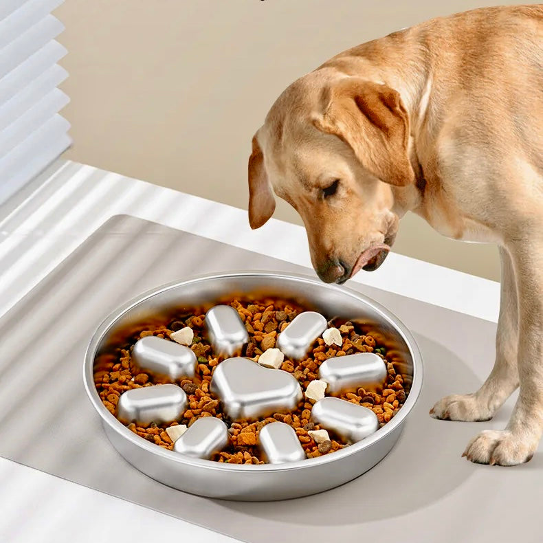 Der Edelstahl Anti-Schling-Napf von PettyyStore sorgt dafür, dass dein Tier automatisch langsamer und entspannter frisst.